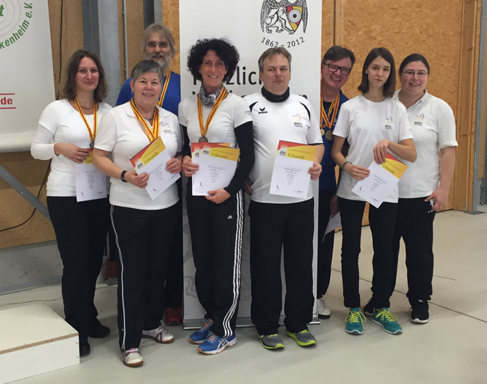 Elf BSCler hatten sich qualifiziert. In einer wunderbar ausgeleuchteten schönen Bogenhalle gab es leider einige lange Gesichter, weil es nicht so lief, wie es sollte. Aber es gab auch Grund zur Freude. So holte sich das dritte Mal in Folge eine unserer BSC-Damen den Landesmeistertitel: Heidi Baumann gewann mit 506 Ringen Gold in der Damenaltersklasse und durfte sich außerdem mit ihren Schützenkolleginnen Ulrike Schütz und Christine Bignion über Mannschafts-Silber freuen. Ebenfalls sehr erfreulich lief es für Jungtalent Tobias Borner, der mit 535 Ringen Dritter in der Schülerklasse A wurde. Ebenfalls den dritten Platz erreichte Christine Bignion in der Damenaltersklasse (453 Ringe). Michael Stammel schoss 543 Ringe, konnte aber in starkem Umfeld damit leider nur Platz 4 belegen.