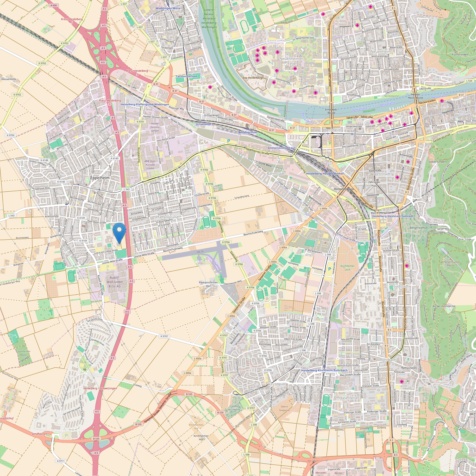 Von der Autobahn A5, Ausfahrt 38 Heidelberg/Schwetzingen ⇒ Richtung Heidelberg; B535, Speyerer Straße L600a